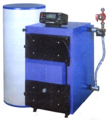Kocioł opalany drewnem Holzgaz 2000. Do opracowania kotła zmusiły nas stystematycznie drożejące paliwa: gaz ziemny i olej opałowy. Kotły opalane drewnem są szeroko rozpowszechnione w całej zachodniej Europie, w szczególności w Niemczech, Austrii, Szwajcarii, i Włoszech. Znajdują się one w ofercie największych europejskich producentów kotłów. Działanie kotła polega na dwustopniowym spalaniu drewna: etap pierwszy zgazowanie drewna w komorze żarzenia, etap drugi spalanie przechodzących przez dyszę gazów. Wysoka jakość spalania, czystość spalin i duża sprawność kotłów na zgazowane drewno upoważnia je do zaliczenia w grono urządzeń ekologicznych. W warunkach polskich, gdzie dysponujemy szczególnie tanim surowcem, ogrzewanie drewnem jest 4 razy tańsze od ogrzewania gazowego lub olejowego. Tym co szczególnie odróżnia kocioł na drewno od kotła węglowego jest praktycznie zupełne spalanie popiół usuwa się raz na dwa tygodnie bez przerywania pracy kotła. Ładowanie kotła odbywa się raz lub dwa razy dziennie, w zależności od aktualnego zapotrzebowania na ciepło. Koncepcja kotła Holzgaz oparta jest na znajomości podobnych rozwiązań producentów Niemieckich. Kocioł występuje w dwóch wersjach automatyki: automatyka uproszczona tj. regulacja temperatury kotła, zabezpieczenie przed zagotowaniem wody w kotle, ochrona przed kondensacją spalin lub automatyka pogodowa: sterowanie obwodami grzewczymi na podstawie temperatury zewnętrznej.