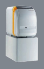 - Olejowy stojący kocioł kondensacyjny składający się z korpusu żeliwnego i ceramicznego wymiennika ciepła spalin.